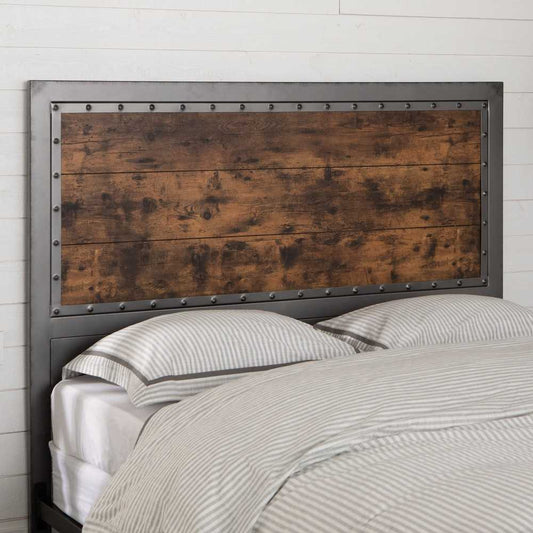 48" Industrial Queen Size Wood Metal Panel Headboard - Brown