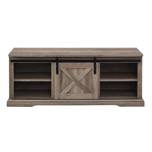 48" Sliding Barn Door Entry Bench with Storage - Gray Wash