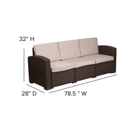 5 Piece Outdoor Faux Rattan Chair, Sofa and Table Set in Chocolate Brown