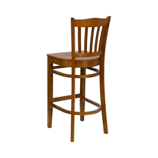 Vertical Slat Back Cherry Wood Restaurant Barstool