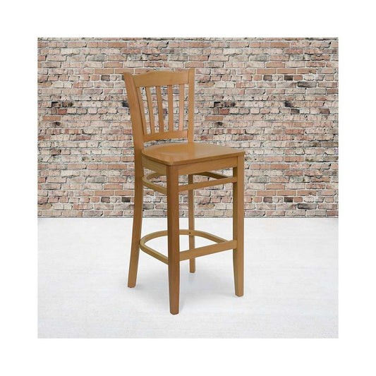 Vertical Slat Back Natural Wood Restaurant Barstool