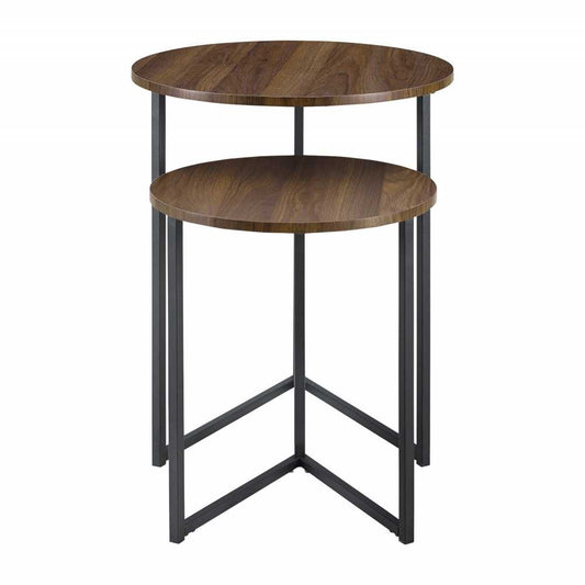 Victoria 2-Piece V Leg Nesting Side Tables - Dark Walnut/Black