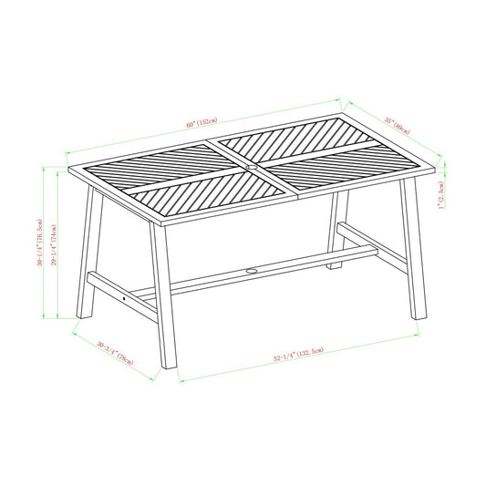 Vincent 60" Acacia Wood Chevron Dining Table - Brown