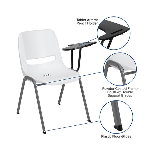 White Ergonomic Shell Chair with Left Handed Flip-Up Tablet Arm