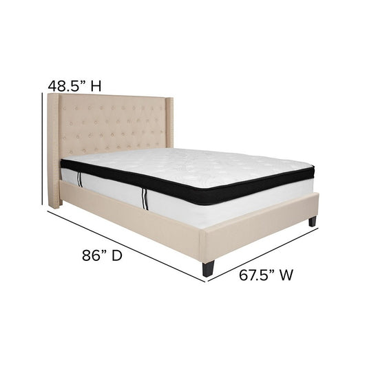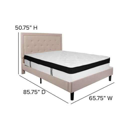 Roxbury Full Size Tufted Upholstered Platform Bed in Beige Fabric with Pocket Spring Mattress