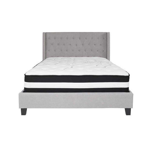 Riverdale Queen Size Tufted Upholstered Platform Bed in Light Gray Fabric with Pocket Spring Mattress