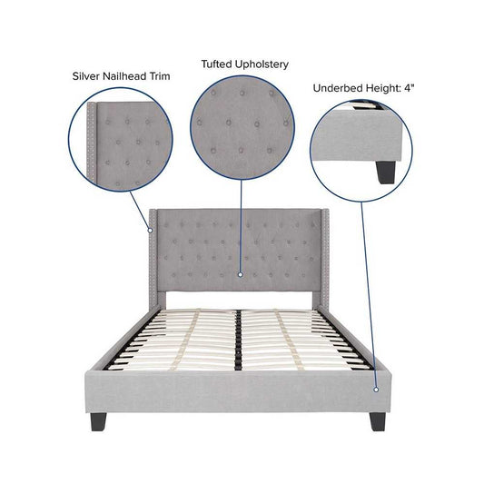 Riverdale Queen Size Tufted Upholstered Platform Bed in Light Gray Fabric