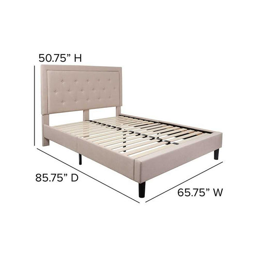 Roxbury Queen Size Tufted Upholstered Platform Bed in Beige Fabric