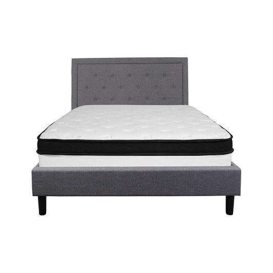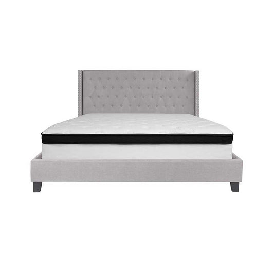 Roxbury Queen Size Tufted Upholstered Platform Bed in Light Gray Fabric with Memory Foam Mattress