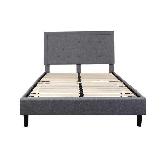 Roxbury Queen Size Tufted Upholstered Platform Bed in Light Gray Fabric