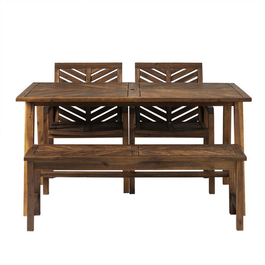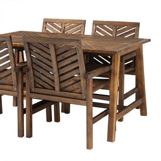 Solid Acacia Wood 5-Piece Chevron Dining Set - Dark Brown