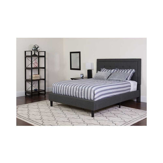 Roxbury Full Size Tufted Upholstered Platform Bed in Dark Gray Fabric with Pocket Spring Mattress