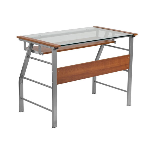 Glass Computer Desk with Pull-Out Keyboard Tray and Bowed Front Frame