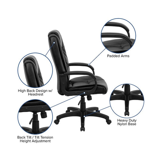 High Back Black LeatherSoft Executive Swivel Office Chair with Arms
