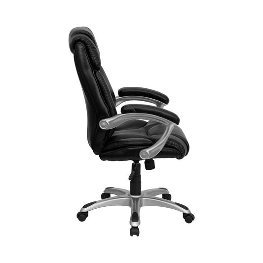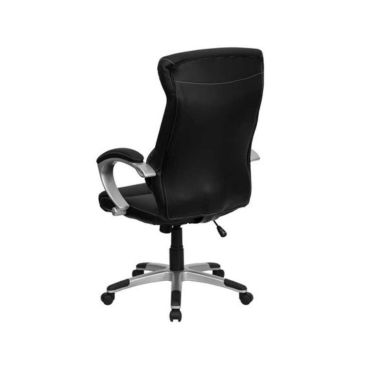 High Back Black LeatherSoft Layered Upholstered Executive Swivel Ergonomic Office Chair with Silver Nylon Base and Arms