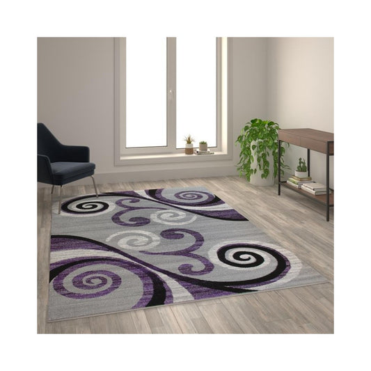 Flash Furniture Valli Collection Purple 6x9 Modern Area Rug OKR-RG1100-69-PU-GG