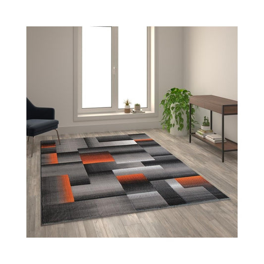 Flash Furniture Elio Collection 6x9 Orange Block Area Rug ACD-RGTRZ861-69-OR-GG