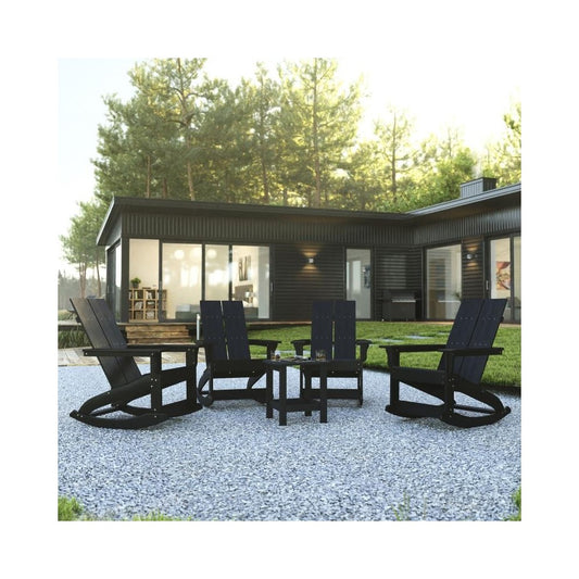 Flash Furniture Finn 4PK Black Rockers & Side Table JJ-C14709-4-T14001-BK-GG