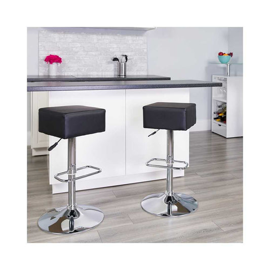 Contemporary Black Vinyl Adjustable Height Barstool with Square Seat and Chrome Base