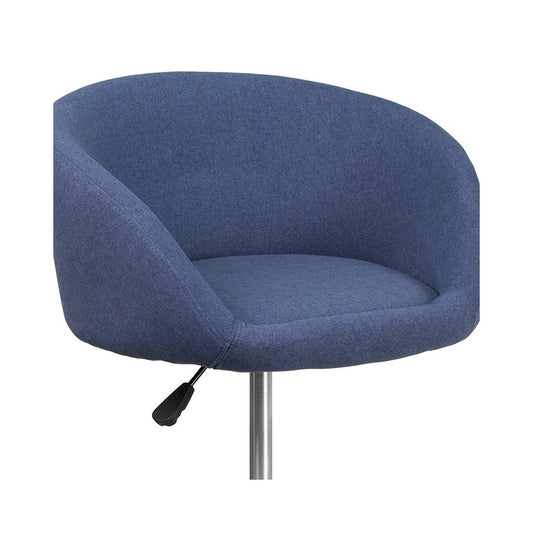 Contemporary Blue Fabric Adjustable Height Barstool with Barrel Back and Chrome Base