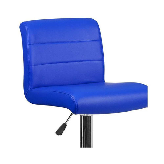 Contemporary Blue Vinyl Adjustable Height Barstool with Rolled Seat and Chrome Base