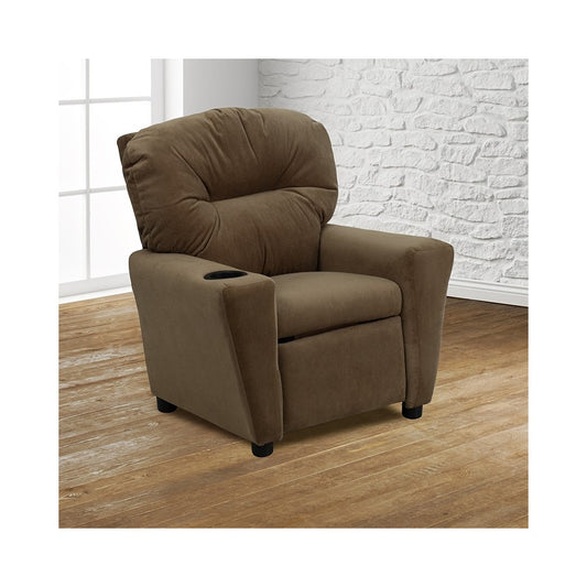 Contemporary Brown Microfiber Kids Recliner with Cup Holder