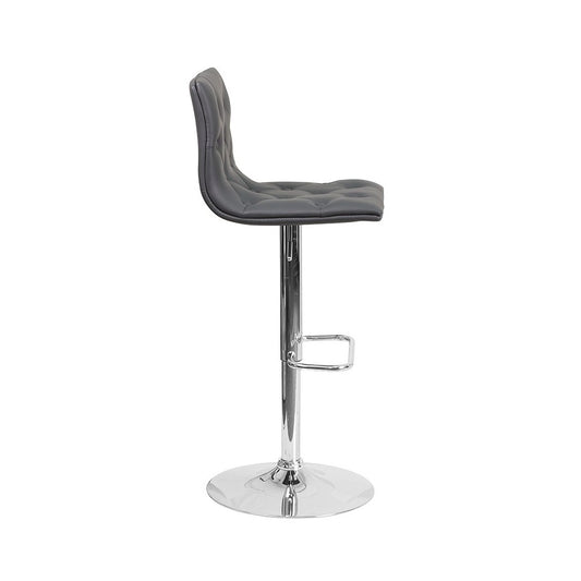 Contemporary Button Tufted Gray Vinyl Adjustable Height Barstool with Chrome Base