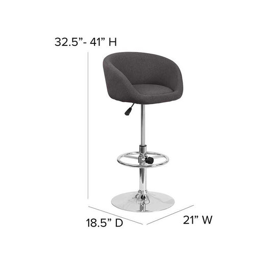 Contemporary Charcoal Fabric Adjustable Height Barstool with Barrel Back and Chrome Base