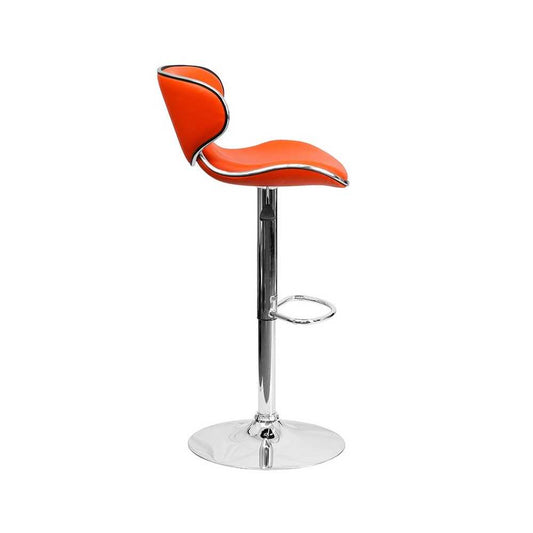 Contemporary Orange Vinyl Rounded Orbit-Style Back Adjustable Height Barstool with Chrome Base