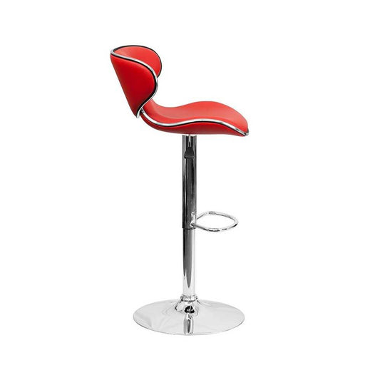 Contemporary Cozy Mid-Back Red Vinyl Adjustable Height Barstool with Chrome Base