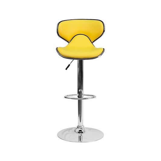 Contemporary Cozy Mid-Back Yellow Vinyl Adjustable Height Barstool with Chrome Base