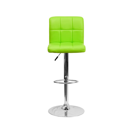 Contemporary Green Quilted Vinyl Adjustable Height Barstool with Chrome Base