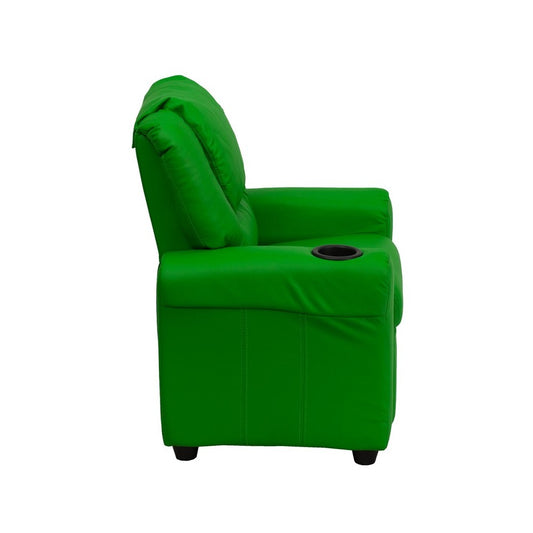 Contemporary Green Vinyl Kids Recliner with Cup Holder and Headrest