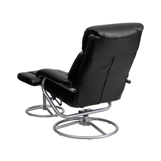 Contemporary Multi-Position Recliner and Ottoman with Metal Base in Black LeatherSoft