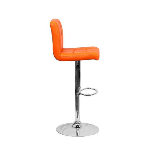 Contemporary Orange Quilted Vinyl Adjustable Height Barstool with Chrome Base
