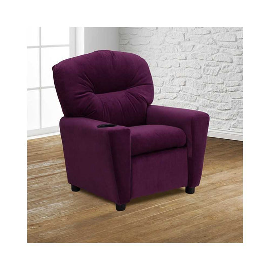 Contemporary Purple Microfiber Kids Recliner with Cup Holder