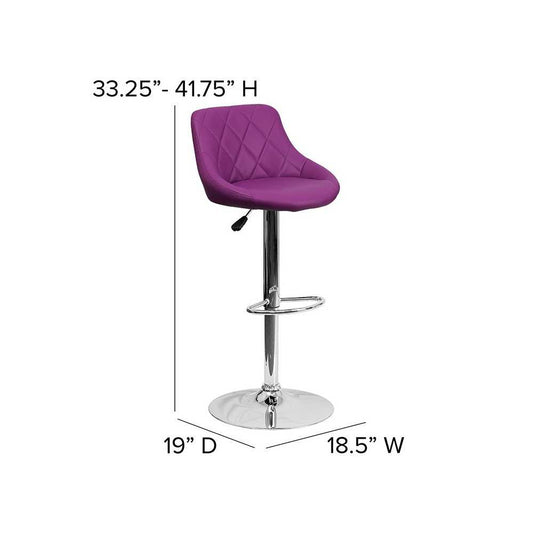 Contemporary Purple Vinyl Bucket Seat Adjustable Height Barstool with Diamond Pattern Back and Chrome Base