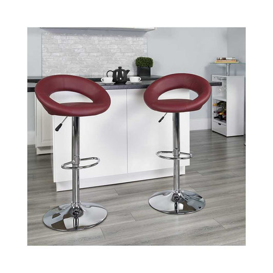 Contemporary Burgundy Vinyl Rounded Orbit-Style Back Adjustable Height Barstool with Chrome Base