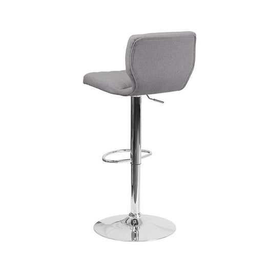Contemporary Gray Fabric Adjustable Height Barstool with Vertical Stitch Back and Chrome Base