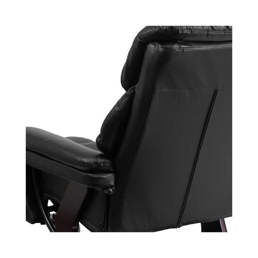 Contemporary Multi-Position Recliner and Ottoman with Swivel Mahogany Wood Base in Black LeatherSoft