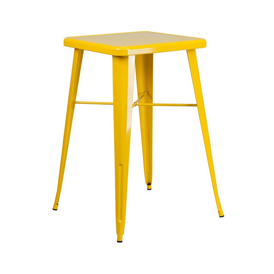 Commercial Grade 23.75" Square Yellow Metal Indoor-Outdoor Bar Height Table