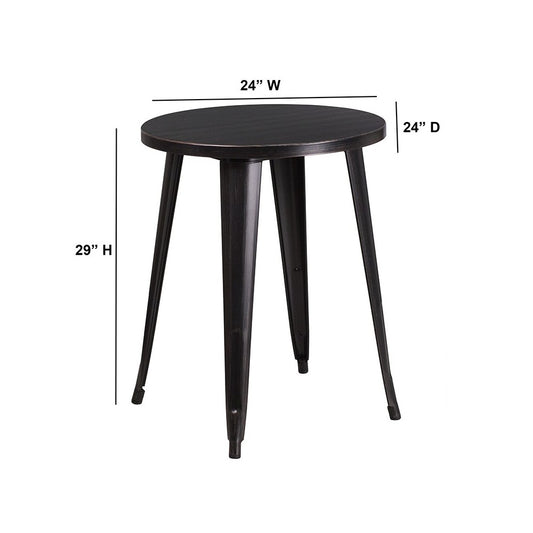 Commercial Grade 24" Round Black-Antique Gold Metal Indoor-Outdoor Table