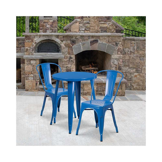 Commercial Grade 24" Round Blue Metal Indoor-Outdoor Table Set with 2 Cafe Chairs