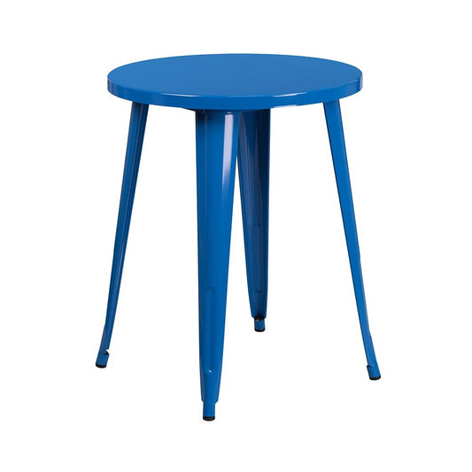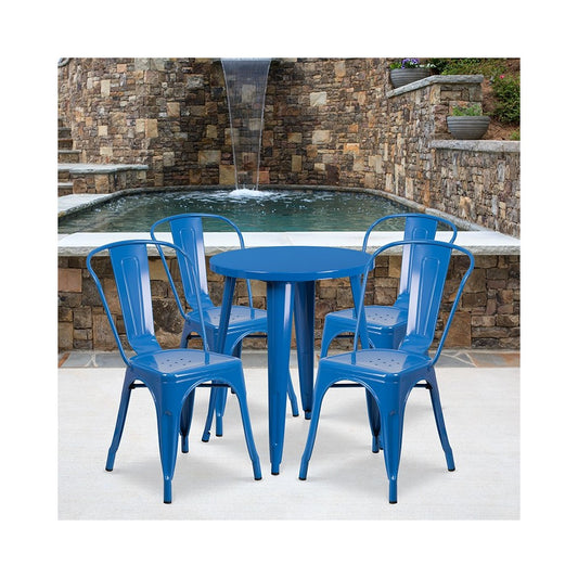 Commercial Grade 24" Round Blue Metal Indoor-Outdoor Table Set with 4 Cafe Chairs