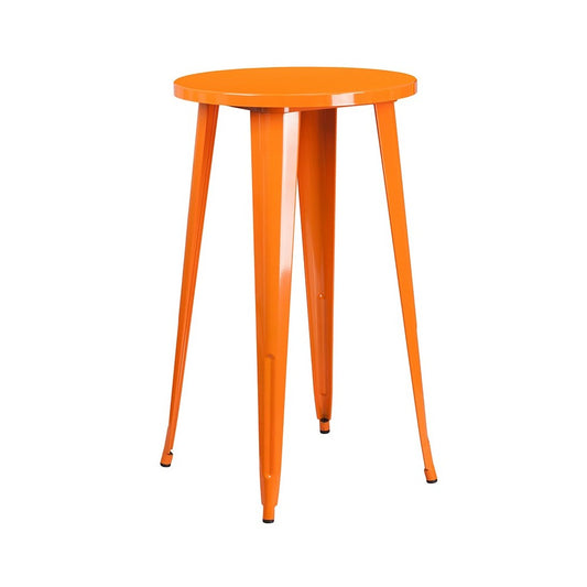 Commercial Grade 24" Round Orange Metal Indoor-Outdoor Bar Table Set with 4 Cafe Stools
