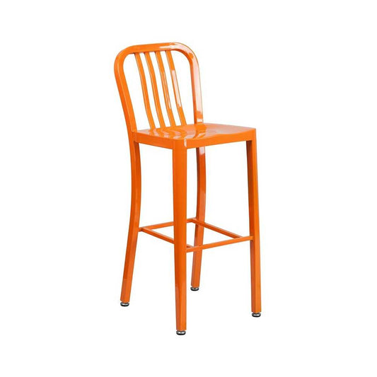 Commercial Grade 24" High Backless Distressed Orange Metal Indoor-Outdoor Counter Height Stool