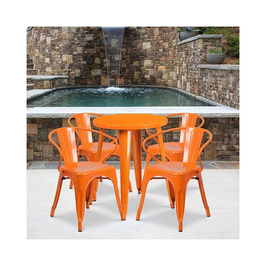 Commercial Grade 24" Round Orange Metal Indoor-Outdoor Table Set with 4 Arm Chairs
