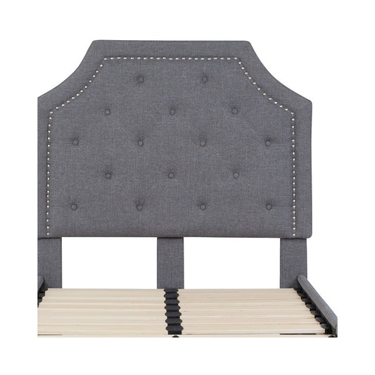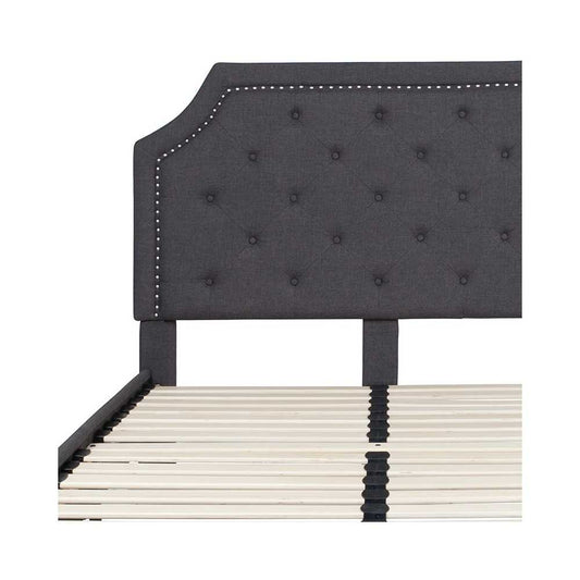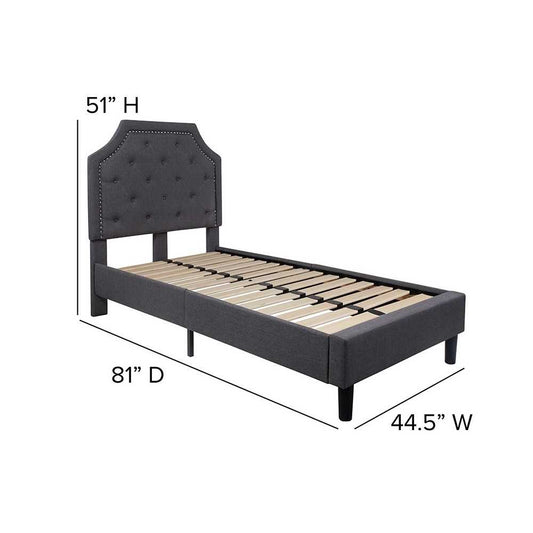 Brighton Twin Size Tufted Upholstered Platform Bed in Dark Gray Fabric