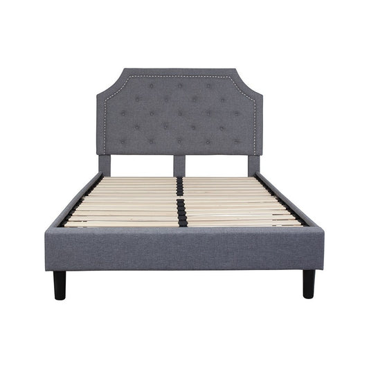 Brighton Full Size Tufted Upholstered Platform Bed in Light Gray Fabric