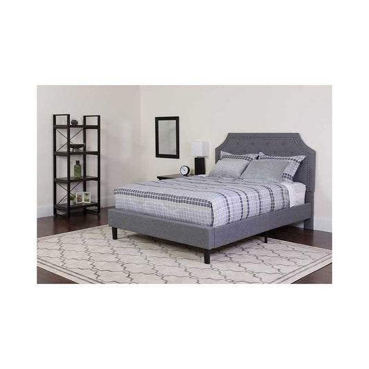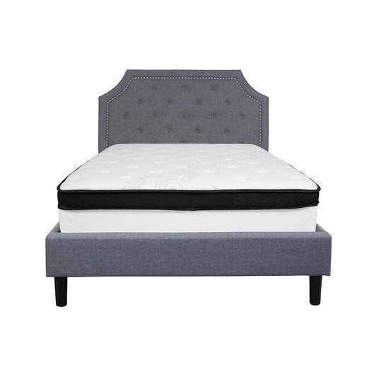 Brighton Full Size Tufted Upholstered Platform Bed in Light Gray Fabric with Memory Foam Mattress